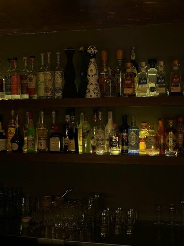 Была здесь одна вечером в субботу. Бар находится в подвале мексиканского ресторана Tacobar. Хостес очень дружелюбные, проводили и показали, куда идти. Очень камерное и спокойное место с приглушенным светом. До 8 вечера тихо и уютно, потом становится оживленнее и чуть более суетливо. В баре большой выбор текилы и мескаля, все-таки это мексиканская тема, но есть и другие варианты. Бармены спрашивают, что любишь, есть ли аллергии, и предлагают коктейли из меню, но могут сделать и что-то не из карты. Коктейли мне понравились. Еще брала тако с креветками и с авокадо, тоже было очень вкусно. В начале угостили шотом маргариты, у них как раз был праздник в ее честь, а в конце предложили шот с настойкой после закрытия счета. Там работают очень приятные люди: контактные, легкие, дружелюбные. Можно спокойно сидеть, смотреть, как они работают, и поговорить, если хочется. Мне рассказали про концепцию бара, его историю, гостей и разные забавные легенды места. Гости тоже оказались очень приятные, поделились, что любят здесь и почему ходят сюда уже много лет. Атмосфера скорее для спокойного вечера и разговоров, чем для шумной тусовки. Из минусов: дул кондиционер и было прохладно, но можно взять плед.