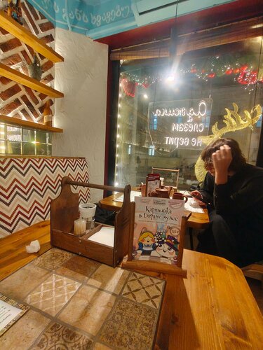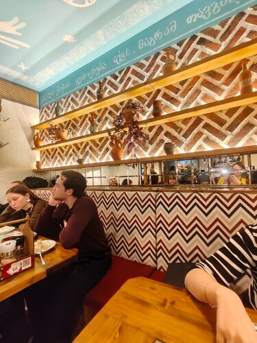 Заглядывали в пт вечером , около 21 часа, было занято - почти всё, то ли пятница , то ли предпраздничный день... Сидели в первом зале , меню - грузинское (в основном), из алкоголя - только пиво (есть и ба - если что ;), хинкали (основные) не острые и нет обжаренных, персонал приветливый и расторопный, в уборной убрано :) с парковкой - как повезёт (и она не бесплатна, разумеется). Ценник - вменяемый :)