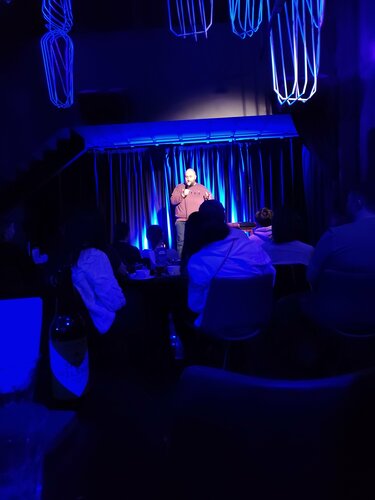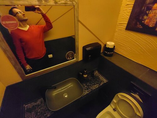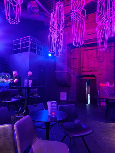 Был на стенд апе , в сб , найти конечно не так-то просто , ну и плюс поблизости нет платной парковки (но нам улыбнулась удача - нашли бесплатно). Вам нужно пройти через центральный вход , потом ещё через одни стеклянные двери и спустившись по лестнице свернуть налево, вы на месте. Внутри темно, в туалете мрачновато и водонапорная башня посередине зала :)  Меню не смотрел , пил пиво ба (их два вида, кстати), заказываете через бартелло, работники приветливы и расторопны, ценник средний , по меркам центра Москвы.