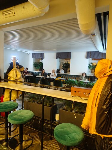 Заглядывали в прошлую субботу , сначала народу было немного (кроме нас - двое), но потом прибавилось и стала полна коробочка ... За баром стулья не очень удобны - более часа трудновато посидеть , чай подают в кружках , кофе (американо) - неплох, ценник - средний. Туалет чистый и стильный . Персонал вменяемый. От метро недалеко , с парковкой - как повезёт...