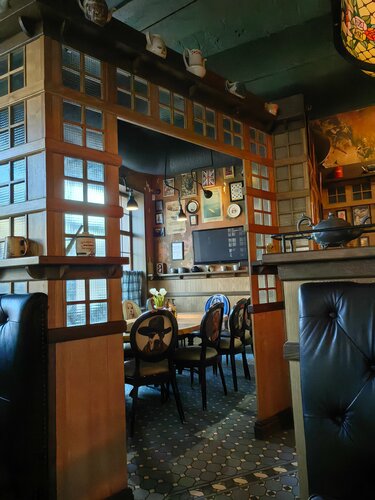 Славно пообедали перед дальней дорогой. Фавориты: Солянка, драники - все супер сытное и порцию чудесных драников (при условии, что Вы возьмете еще и суп) можно смело брать одну на двоих! Сметана - видимо она сделана по ГОСТУ из прошлого, потому что вкус не передать словами! Забыла название горячего напитка(не глинтвейн) - волшебное согревающее зелье! Бронируйте заранее (нам очень повезло, что оказался свободный столик)