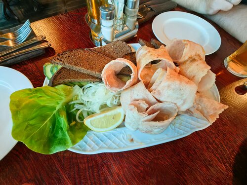 Вот так *праздник живота* мы себе устроили во втором месте юбилейного гастрономического тура! Фавориты: Строганина из пеламиды- огромное спасибо официанту Дарье, она показала нам как ее употребляют в еду местные жители - вкусовой восторг. Хотя не первый раз в Калининграде, но про некоторые фишки узнали только сейчас и это блюдо стало еще любимее! Сердце оленя-Мужская половина нашего стола осталась в восторге, как сказал муж моей подруги - сердечко в нашем сердечке! И в честь Дня Рождения было несколько приятных сюрпризов, выражаем всей нашей компанией Вам огромную благодарность!