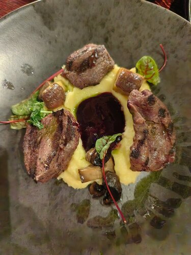 Лучший ресторан и культурная новогодняя программа. С Новым Годом, мои многоуважаемые читатели отзывов! Хотите отлично отметить Новый Год: в новом месте, вкусно поесть, натанцеваться так ,чтобы потом ножки сказали Вам 'спасибо', услышать шикарную кавер-группу и замечательно организованное мероприятие с великолепным ведущим, если Ваш ответ ' 'да', тогда ловите план - обзваниваете всех родственников, друзей и знакомых, за 3 месяца до НГ мониторите билеты в Гродно (так как они разлетаются в первую неделю) и заранее связываетесь с рестораном для брони стола! Фавориты: Ооо, салат-шпинат с бастурмой из утиной грудки с домашним сыром и с медово-горчичным соусом - отличное сочетание не только для того, чтобы провожать старый год 😍 А крокеты из семги с сыром крем-чиз - рыбная нежность ❤️ Ну и как же без королевы стола - сельдь под шубой - мечта, а не шуба 🤣 Интересная закуска - эклеры с пармской ветчиной и семгой! Спасибо огромное нашему официанту Евгению - сервис просто не подобрать слов, насколько хорош! Территория огромная, есть повод вернуться в теплое время и везде прогуляться.