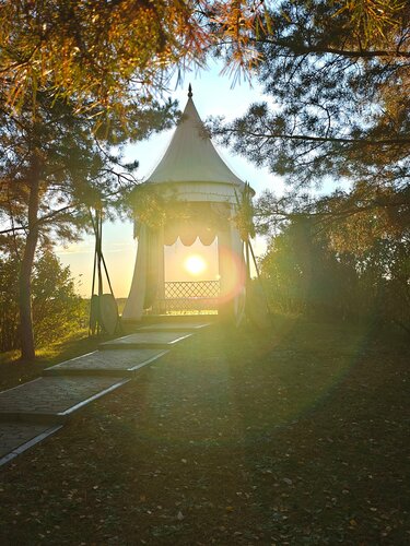 Хорошее, уютное местечко. Вежливый персонал. Хотя территория и небольшая, но есть где погулять. Очень красивая природа, есть что и где фотографировать. Благоустроенные домики, рядом мангальная зона. В доме есть хорошо вооружённая кухня, есть на чëм и приготовить, и разогреть еду. Если готовить неохота, есть ресторан.