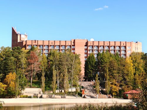 Санаторий среднего ценового уровня. Атмосфера тихая и спокойная. До курортного парка пешком минут 15. Персонал вежливый. Шведский стол. Неплохой выбор разных блюд, всё вкусно.