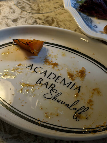 Были в Academia Bar Shuvaloff при бутик-отеле «Академия» в Петербурге. Очень приятное место с красивой лепниной на потолке. Отдельно хочется отметить бар — коктейли здесь действительно КРЕПКИЕ! и очень вкусные, советуем попробовать. Но главное, ради чего сюда точно стоит прийти — графские завтраки. «Завтрак графини Дашковой» и «Завтрак графа Шувалова». Подача богатая и очень атмосферная: яйца с икрой, блины, бриошь, рыба, сырники, каши, десерты, соки и напитки. Интересная деталь: к кофе и чаю подают финики. Это не случайно — если посмотреть историю, граф Шувалов действительно любил финики, они даже упоминались в его переписке с Ломоносовым, внимание в деталях которое не афишируют а просто работает. По цене: базовая стоимость завтрака 8500₽ на человека. Но если бронировать заранее (более чем за месяц), действует специальная цена — 5500₽ на одного или 7500₽ на двоих. Поэтому лучше планировать визит заранее — так получится гораздо выгоднее. Забронируйте заранее — и будет вам счастье, сюда и на обед хочется зайти.