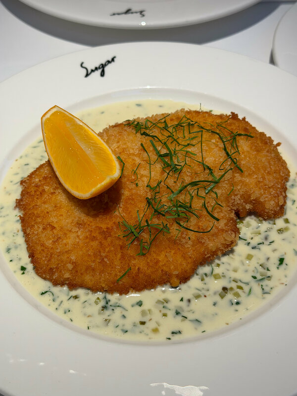 Если коротко, Sugar Bistro — это не просто хорошо, это очень хорошо. Честно говоря, были ожидания, но в итоге место их полностью превзошло. В Sugar точно стоит прийти хотя бы ради тартара: в нашей памяти это, кажется, самый вкусный тартар в городе. Стоит 1450₽, абсолютно оправданно. Обязательно берите бургер Sugar (1590₽) — очень сочный. Аранчини с щёчками (1000₽) — отличная закуска, и куриный шницель с соусом тартар (1300₽). И ещё один момент, который чувствуется во всём: внимание к деталям здесь предельное, а проекту скоро год исполнится!