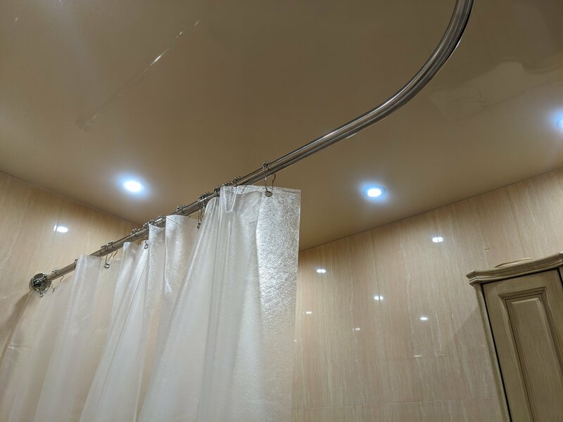 Отличный крепкий карниз нужного размера :)) И отличные кольца для штор с шариками, штора проще ездит, хотя она больше, чем предыдущая :)