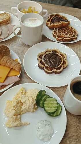Посещаю данное заведение не первый раз. Обычно всем довольна, но в этот раз было не так здорово. Обслуживание: + Приятный персонал: и хостес, и сотрудница гардероба и официантка Софа + Принесли стульчики для сумок - Регламент того, что в абсолютно не загруженном заведении нужно посадить в первую очередь за столики в центре заведения печалит. Интерьер: + Приятно находится, располагающая полутьма, столики расположены не супер близко друг от друга - Стулья шатаются Еда: + Сестра брала крылышки Чили и салат с печенью, говорит было вкусно, но жаль, что крылышки холодные. + Насыщенный бизнес ланч по количеству, точно можно наесться и по цене недорого получается - Другой вопрос - вкусовые качества. Мне было вообще не вкусно, не понравился ни грибной крем суп, ни болоньезе, ни Цезарь, ни хлеб (он был холодный и не свежий). Морс приемлемый. - Подали сразу все блюда из бизнес-ланча, в результате было тесно за столиком и всё, кроме супа было остывшим. Очень хочется поставить 3 звезды, но из-за милой официантки Софы и надежды на раскрытие потенциала данного кафе, ставлю 4⭐