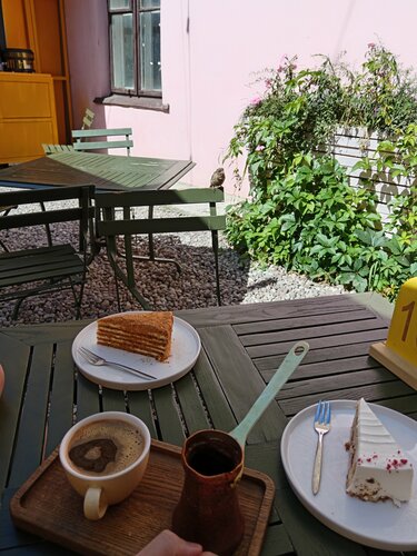 Кофейня понравилась, десерты вкусные, кофе тоже. Уютно, чисто и атмосферно. Я для себя отметила место, где можно почитать книгу посидеть, встретиться с подругой. На большую компанию не рассчитывайте, ну на 6 человек нашли столик нам. Достаточно удобное расположение, летом есть столики на улице.