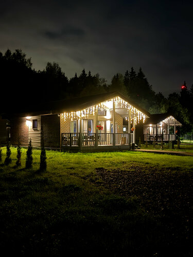 Отлично отдохнули компанией из 6-ти человек. В комплексе есть спа, баня с чаном и контактный зоопарк с павлинами, а так же на территории имеется 2 парковки + можно ставить авто возле домиков. Питание по системе "все включено" шведский стол(завтрак, обед и ужин) и безлимитный алкоголь (водка, вино и шампанское брют и полусладкое, пиво). Если бронировать больше чем на неделею, то будет скучно.
