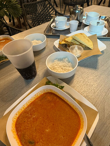 Отличное кафе возле кластера МГУ Ломоносов, можно попасть не выходя на улицу. Решили позавтракать с коллегой между утренними сессиями на форуме, как оказалась до 12:00 подают не только завтраки, но и основное меню. Людей немного, вкусно, но морепродукты подгоревшие.