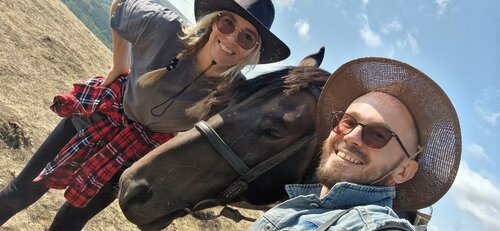 Впервые с мужем решили отправиться на конную прогулку. Очень понравилось! Было немного страшно садиться на лошадь, но они такие умнички, очень спокойно себя вели. На столько спокойные лошадки, что просто посмотрите фото😅 Прогулка по живописным местам, очень красиво! Для новичков самое то. Берите с собой морковку, лошадки после катания все были накормлены😊 Инструктор понравился, постоянно соивсеми шутил)))