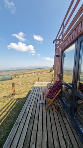 Это лучшее место для душевного и уютного отдыха. Настолько приятно встретила администратор и милый пёс Бади 💔 Домики уютные, тёплые, с красивыми видами. Рядом питомник с волками, иногда они воют, но абсолютно не мешают, а добавляют колорита, как будто в лесу живем😅 Завтраки просто восторг, такого я нигде не встречала👍 Вообщем от души советую это прекрасное место, надеюсь вернёмся к вам не раз💝