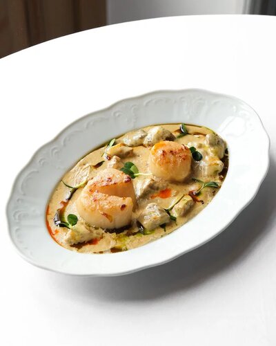«Кот Бегемот» — аристократичный ресторан русской и европейской кухни в Москве, созданный по мотивам романа М. А. Булгакова «Мастер и Маргарита». Расположен недалеко от станции метро «Сухаревская»: пр‑т Мира, 12с9. Интерьер и атмосфера Заведение погружает гостей в атмосферу Москвы 1920‑х годов. Ключевые элементы интерьера: белоснежные скатерти на столах; хрустальные бокалы; чёрно‑белые фотографии старой Москвы на стенах; изображение кота Бегемота; фарфоровые фигурки на камине; старинный сундук и буфет, дополняющие ретро‑стиль. Меню В меню представлены блюда русской и европейской кухни, среди которых: утиные пельмени; ароматный борщ; тартары (в т. ч. из говядины и лосося; брускетты; паста и ризотто; язык телячий с хреном и горчицей; форшмак на бородинском хлебе с икрой омуля; паштет из куриной печени с луком конфи; гребешок с грибами и ароматным сливочным соусом и др. Винная карта включает напитки из Франции, Италии, Испании и России. Бар предлагает классические коктейли и крепкие напитки. Залы и вместимость Ресторан располагает тремя залами для аренды: Мансарда (2‑й этаж) — до 16 гостей. Большой зал (1‑й этаж) — до 18 гостей. Клуб — до 110 гостей. Всё пространство (два зала) можно арендовать целиком. Услуги и особенности организация мероприятий: свадьбы, дни рождения, корпоративы, банкеты и т. д.; шоу‑программа под ключ от команды ресторана; возможность принести свои крепкие напитки (действует пробковый сбор); собственная парковка на 6 мест. Практические данные Средний чек: 2300 ₽. Режим работы: до 00:00. Мне понравилось: атмосферность заведения; вежливость персонала; высокое качество кухни; удобство для свиданий и камерных мероприятий; наличие парковки. Отличный ресторан 👍 в Москве.