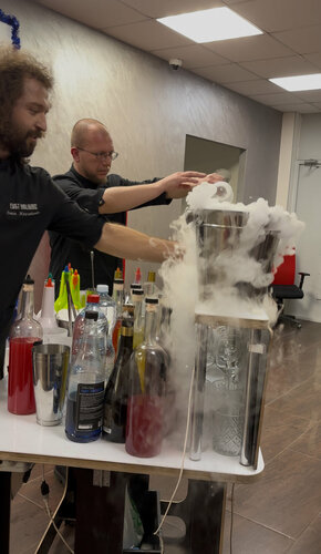 Приглашали ребят на небольшой интерактив в офисе к 23 февраля: устраивали парное шоу барменов и короткий выездной бар. Распишу плюсы и минусы: + сами парни очень классные! Было приятно познакомиться и пообщаться. К нам приезжал очень харизматичный Ваня, основатель компании и медийный бармен. И второй бармен Юра тоже классный. - в процессе шоу не все было гладко — что поделать, бывает. Сложилось ощущение, что именно шоу ребята показывают достаточно редко. - шоу длилось от силы минут 15, ничего сверхъестественного не показали – было достаточно обыденно, я ожидала намного большего, глядя презентации... Провели лишь один микроконкурс перед началом шоу, думала, будет 2-3 задания и больше вовлечения коллег. Сложилось ощущение, что парни просто хотят поскорее завершить выступление – и перейти к наливанию))) - всё стоило ОЧЕНЬ дорого. 15 минут кидания пластиковых бутылок стоили как два детских двухчасовых утренника с кучей героев... Катастрофическое расхождение цена=качество. Если бы всё стоило дешевле в 2-3 раза, у меня бы не было вопросов! + приятный менеджер, оперативно отвечала и помогала - меню переделывали несколько раз, были орфографические ошибки, неправильные составы. В меню нельзя добавить даже маленькие фотки 3 коктейлей без оплаты, несмотря на конский ценник всего мероприятия! - бармены опоздали к началу, пришлось смещать весь тайминг, что меня очень огорчило, а всем коллегам сбило настрой (но тут спишем на снегопад, хотя просто надо было выезжать пораньше). Менеджер мне обещала, что ребята приедут за 2 часа(!!!) до начала, но они приехали через 15 минут после начала (!) + коллегам понравилось общаться с барменами, выбирать коктейли. Ваня знает много классных историй:) Сами коктейли не всем пришлись по вкусу, но это дело сугубо индивидуальное. Отмечу, что они действительно авторские – "Мохито", например, совсем не похож на самого себя, а доводилось его пить не раз во многих местах. + оригинально! Стойка, клубы дыма, звон бокалов... Как вариант для тех, кто уже "всё видел" хорошо подойдет! К сожалению, от меня только 3 балла:( Но с плюсиком😉