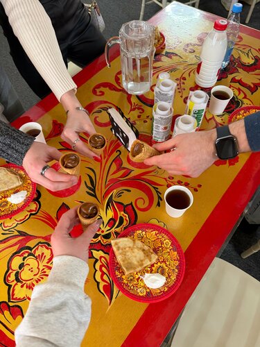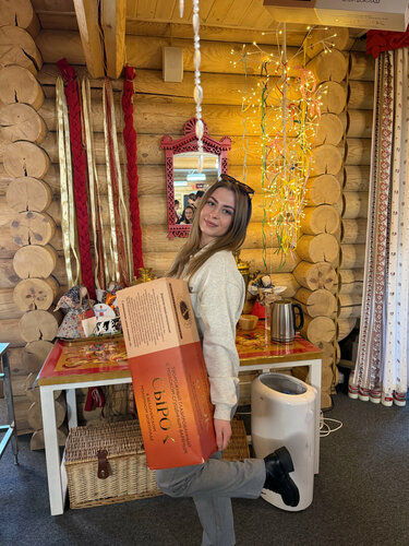 Те самые сырки 📍Ростагрокомплекс За мкадом, за Мытищами, где-то в селе Петушки Мы ехали на машине 1,5 часа Здесь отдельное здание-музей сырка, красиво оформленное. Нас встретили «аниматоры» и мы на улице хоровод водили, змейку, провожали масленицу вообщем)) потом сжигали мини чучело. Оч интересно, а если не масленица, то они как развлекают или вообще этого нет. Далее мы прошли в музей, где мы присели и нам рассказывали про молоко, включали интерактивную корову, которая рассказывала как молоко появляется, и избушка, где семья тоже рассказывала историю Самая вкуснятина ждала на 2 этаже. Как только поднялись, нас угостили вафельной трубочкой с сгущенкой и чаем. Мы прошлись к столам, где нас ожидал пир)) Два блиничика, собственного производства Сметана, бутылка молока на стол, вода, пустая бутылка от йогурта, которую мы сами потом заполняли, ну как, просто кинули в машинку, она там шустренько все сделала)) на выходе дарили коробочку (4 разных сырка) Экскурсию по цеху начали с хранения молока, где рассказали как проверить молоко. Есть ли добавки в молоке по типу соды, крахмала, воды. Показывали эксперимент. Потом отправились на производство сырков. Также в окошки посмотрели как делают сырочки ростагрокомплекса (те сырки, которые покрываются бельгийский шоколадом) и ростагроэкспорта(те сырки, которые покрываются глазурью). В конце нам предложили сырок картошка и сырок со сгущенкой. Так как все сырки взяли и там еще осталось, то нам предложили взять еще, а потом еще. Ушли довольные с сырками)))) Коротко: Накормили, напоили, научили и рассказали 11/10!!!