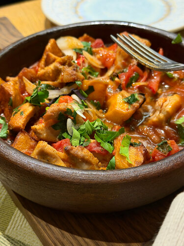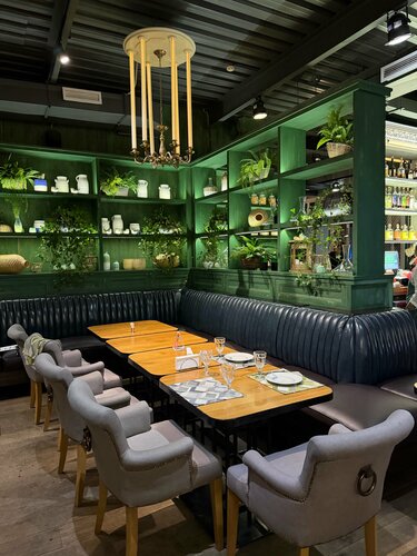 [ самое главное было найти вкусное, симпатичное и популярное место ] 💸ср. чек ~ 1700₽ Мы не бронировали столик, тк решили это сделать за 4 часа. Но нам отказали в брони, якобы все занято, а по живой очереди вы даже не пройдете. Крайне неприятно ответил админ по тлф Нам пришлось идти на крайние меры и через грязевой проход под мостом топать до этого места. Каково было мое удивление, когда нас спокойно разместили и к тому же было много свободных столиков, к которым никто не пришел. Мне эта махинация никогда не понятно. Сервис уже захромал на уровне администратора. Ну а что по еде? У нас был мир на весь пир. Самое вкусное — хинкали с креветкой в соусе том ям. Это очень калорийно, но отвал бошки!!!! Обязательно такое сочетание попробуйте! Хинкали с мясом обычные, сочные. Хачапури по-Имеретински, оджахури - ок, обычно. Нам принесли 1 лишнюю хинкали, мы предлагали забрать, на что был ответ «я ж не понесу в руках» что-то типа такого. Официант пошел разбираться почему так и в итоге не вернулась с обратной связью. Думали подарок тогда от заведения, а в итоге в счет вписали. Ай да молодцы (им повезло, что я была в прекрасном настроении) Вкусный банановый пирог, но не хватает корицы. Коктейль From Russia очень вкусный, люблю сочетание с белковой пеной и сладенько. Sleepy zombie такой крепкий и терпкий, тоже вкусно Пока кушали, слушали живую музыку Итог: 7/10 Из-за сервиса и цен