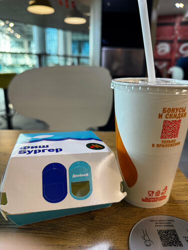 Это наверно лучший филиал мак, который я когда либо посещал. Супер вкусный и свежий рыбный Бургер, как будто поед в ресторане. В зале очень чисто и уютно, нет школьников, и не понятных людей. Успехов вам и по больше хороших оценок 😅🙌