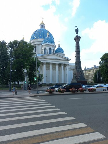 Храм лейб-гвардии Измайловского полка был освящён 12 (23) июля 1733 года и выглядел он очень скромно. В том виде, в котором мы видим его сегодня он стал в 1835 году. Голубые купола с золотыми звездами - невозможно оторвать взгляд. Стоит храм на набережной Фонтанки. Объект федерального значения.