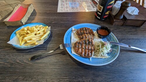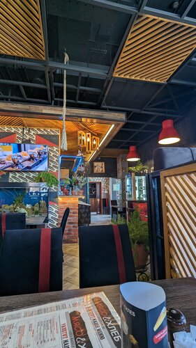 Отличное оформление (по сравнению с другими ресторанами сети, в которых был). Из особенностей: подача блюд была на обычных тарелках, в другом ресторане используется фирменная посуда из дерева. Качество блюд также на высоте, котлеты из индейки и хрю-шашлык одни из лучших. Рекомендую к посещению.
