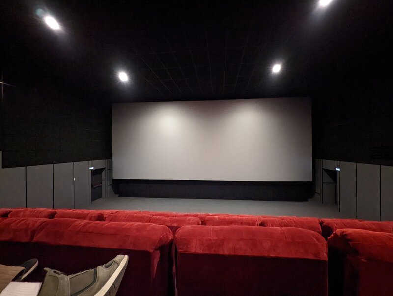 Из плюсов: удобное расположение, низкие цены, мягкие кресла, звук. Из минусов: проектор использует не всю доступную ширину экрана. Спорные моменты: Не совсем понятна затея с диваном посередине в кинозалах, не всегда сеансы посещают пары. Стандартные кресла с откидными подлокотниками куда лучше подходят для этого (на мой взгляд). Стыки с подстаканниками будут собирать мелкие частицы в виде крошек. Фото: 6 ряд.