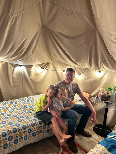 Прекрасно отдохнули с детьми) Жили и в палатке и в домике, все понравилось) Персонал вежливый и отзывчивый) Рядом грибной лес