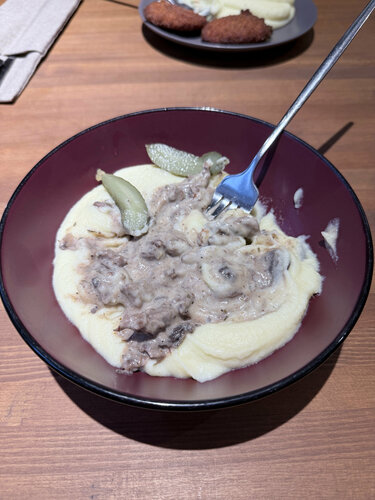 Хороший стильный интерьер. Достаточно большой выбор блюд на любой вкус, которые красиво оформлены в меню. Можно уютно посидеть, поговорить за обедом. Но поставлю 4-ку вот из-за чего: - внутри тесновато, и такая атмосфера немного давит; - мне попалась не самая мягкая говядина, которая смазала впечатление (пришлось долго орудовать зубочисткой)