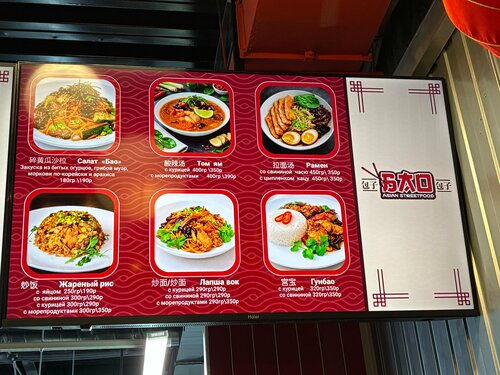 Неплохое место с хорошими ценами. Могу отметить, что очень хороши на вкус гунбао, жареный рис, вок, крылышки; чипсы креветочные прикольные. Заведение с действительно азиатским настроением. Но если хочется острее, то надо попросить на кассе добавить остроты - добавят без проблем. Жаль что посуды нет керамической, все выдается в одноразке. Кушалось бы ещё приятнее.