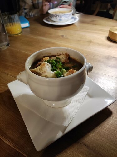 После долгой прогулки от гостиного двора, через Эрмитаж, дворцовую площадь, множество мостов, желая быстро перекусить, посетили данное заведение, сразу предупредили официанта что времени мало, срок подачи блюд до 30 минут, он оперативно принес нам столовые приборы, меню и говорил заказ сразу на кухню, за что большое ему спасибо Блюда и правда сделали очень быстро, я выбрал французский луковый суп, и это самый вкусный суп на свете, он был приготовлен великолепно, обожаю французскую кухню, считаю это место отличным для того чтобы ознакомится с французской едой