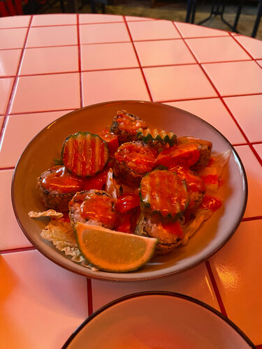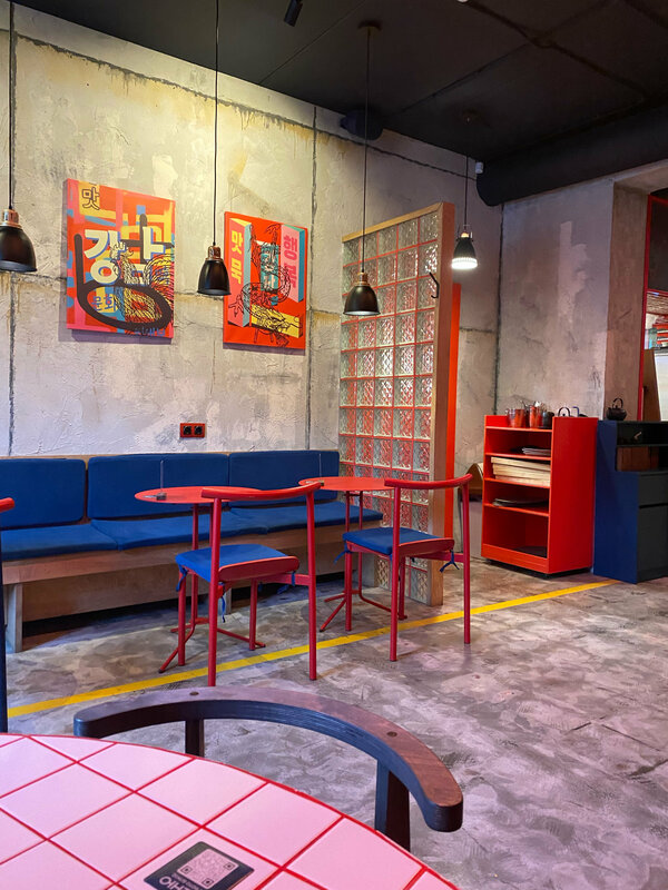 Kan Chicken — это действительно замечательное кафе, которое стоит посетить. С интересным интерьером, выполненным в ярких контрастных цветах, таких как красный и синий, оно создает уникальную атмосферу. Наконец-то есть место, где нет бежевых интерьеров. Интерьер кафе динамичный и стильный, что привлекает внимание. Это место идеально подойдет для комфортного обеда или ужина, где вы можете расслабиться и насладиться атмосферой. С системой самообслуживания все очень удобно: вы подходите на кассу, делаете заказ и оплачиваете его, после чего официанты приносят вам блюда. Это экономит время и позволяет избежать столпотворения. В меню много интересных позиций. Мы попробовали салат Цезарь — он подается в виде роллов с листьями салата и соусом, что делает его подачу оригинальной. Также заказывали Том Ям с креветками — отличный вкус и насыщенное наполнение. Дополнительное молоко, подаваемое к нему, дает возможность самому выбирать насыщенность вкуса . ### Итог Kan Chicken — это атмосферное место, где можно быстро и вкусно поесть без лишнего напряжения от обслуживания. Рекомендуем всем, кто хочет насладиться отличной кухней и приятной обстановкой!