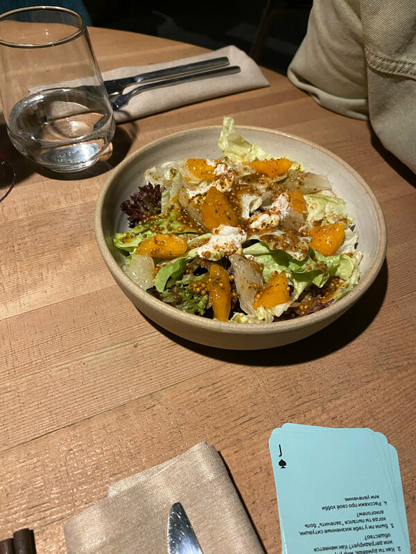 Были здесь последний раз три года назад и после ещё одного вечера понимаем, что мы точно сюда не придём. Но это не значит, что ресторан плохой — просто вкусы у нас другие. Мы больше фанаты Дзе и Home, там кухня нам ближе и вкуснее. Что касается команды, то нас тепло встретили и с нами с удовольствием работал официант, который был обаятельным и действительно разбирался в каждом пункте меню. Обстановка приятная, немного космическая — идеально подходит для разговоров тет-а-тет. Если вернуться к кухне, то сложно сказать, что какое-то блюдо было супер вкусным, потому что мы пробовали и салаты, и горячее, и роллы, и десерты, и, к сожалению, ничего не зацепило. Вино, однако, было подобрано точно по описанию и приятно по вкусу. Таким образом, 4 за то, что это место до сих пор может удивить и вдохновить, но с минусом, потому что это место не станет нашим.