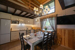 Заезжали 3 семьями со взрослыми детьми. Поселили в коттедж #1. Мест на 10-х хватило с лихвой. В домике достаточно посуды и столовых приборов. Есть большой холодильник, плита, микроволновая печь, посудомоечная машина. Порадовала сауна, она электрическая и не сильно нагревается, но этого достаточно для всей семьи. Коттедж 2х этажный, просторный. Туалетные комнаты на обоих этажах. Постельное чистое. Достаточно полотенец и тапочек одноразовых. Территория не большая. Есть детская площадка. Мангал и принадлежности в наличии. Расположение комплекса - в самом лесу. Тихо 🙂 Хозяива отзывчивы и добродушны. Нам очень понравилось 😊