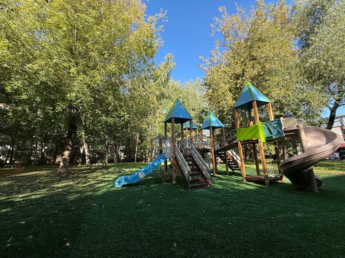 Обновленная детская площадка. Интересная, в тени деревьев
