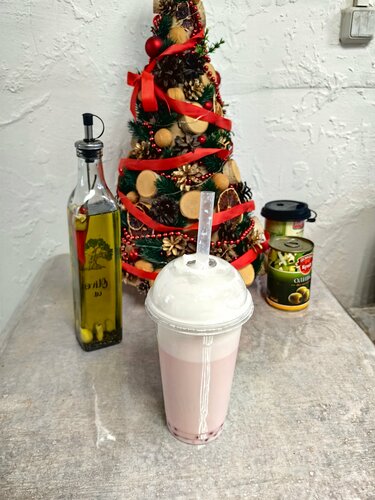 Персонал хороший, вкус напитка хороший, но тапиока почти полностью недоваренная, как будто её в кипяток отпустили и сразу вытащили.