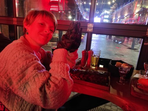 Провели потрясающий вечер в ресторане. Проездом в городе. И жили вблизи пространства "Seno" где и расположено это заведение. Чесно, выбрали из всего разнообразия по названию. Такое интересное. "Мычара" значит мясо, а такое мы любим. И не ошиблись. Наш заказ рёбрышки с фееричной подачей и не менее фееричные вкусом. Тают во рту. Салат с хрустящими баклажанами. Вкусный и красивый. Муж оценил хлебную тарелочку. Необычный хлеб как из тостера хрустящий и с маслом. Сет наливочек разные вкусы не сильно крепкие, но приятные и под мясо отлично. Особенно хочется отметить заботливый и вежливый персонал. Кухня открытая. Видно как готовят. Ребята просто профессионалы. Несмотря на большую загруженность, всё отдавалось четко и быстр. Видно что все как одна команда. И сам интерьер здорово сделан. Живая музыка играла. В наш визит ребята пели джаз. Мне прям в сердечко. Один большой минус. Теперь всё мясо буду сравнивать со вкусом съеденного в "Мычаре" и что-то мне подсказывает такое мало где можно съесть. А в Санкт-Петербурге я не часто бываю. Желаем "Мычаре" оставаться таким же гостеприимным и вкусным❤️