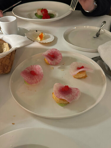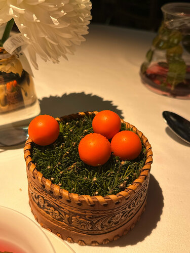 Атмосферное, красивое место и с прекрасным обслуживанием, нам конечно не совсем повезло с официантом, немного не дотянул до уровня ресторана и цен, но впечатления не испортило. Блюда все шикарные, каждый ингредиент сделан из свежих продуктов, тирамису с имитацией черной икры не вызвал по вкусу вау эффекта, просто очень хороший качественный тирамису, но подача невероятная. Рекомендую попробовать креветки, точное название не помню, но по фото можно найти, они запомнились максимально ярко из всего, что мы взяли.