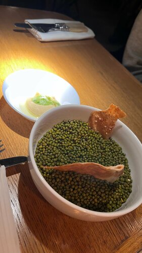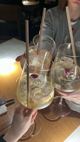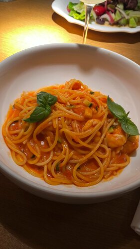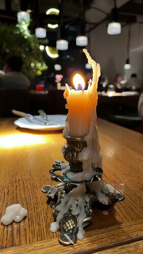 Вчера посетили ресторан впервые. Прекрасное место! Понравился интерьер и блюда, очень красиво и уютно. Паста с креветками:4/5. Была острая. Хотя официант предупредил об остроте и сказал, что если нужно, шеф-повар может сделать менее остро. Мы согласились. Но паста все равно была острой, либо забыли снизить остроту, либо она прям для любителей красного перца чили Пицца груша и горгонзола: 5/5. Вкусная, и подается с каким то интересным соусом отдельно. Нам понравилась Салат с телятиной:5/5. Отличный, мясо вкусное и сочное Еще мы брали разные коктейли, название только я уже не помню ;) Могу сказать, что здесь неплохая Маргарита :) В конце ужина нам принесли лимончелло. Это было неожиданно и приятно. Еще был комплимент в самом начале: сухая лепешка с хумусом. Лепешка не очень, слишком жесткая, а вот хумус был отличный Итог: нам все понравилось. Немного не хватило внимания со стороны официанта, но была полная посадка в этот вечер, поэтому простительно :)