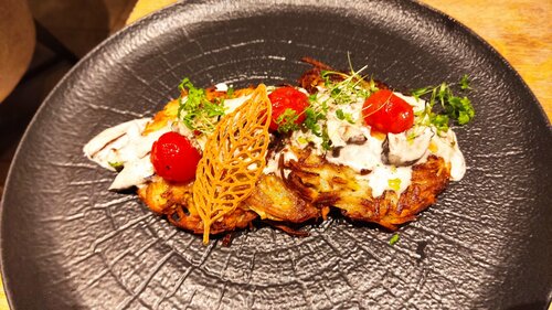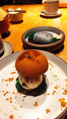 Ехали специально, чтобы попробовать пирожные, и не пожалели!) десерт, выигравший конкурс, со вкусом белых грибов это нечто непередаваемое, сплошной восторг и райское наслаждение! Камень тоже чудесный! Десерты в меру сладкие, что сейчас такая большая редкость! Шефу огромная благодарность! На этом всё хорошее заканчивается, хостес на пустой стойке около запрещающей таблички проходить без сопровождения персонала ждали минут 10, при том что мимо сновали официанты, а два бармена наблюдали за нами с улыбками, наверное ждали, что мы развернемся и уйдем) нет, мы постоял, а потом сильно удивились, посадка была на пол зала, наверное это чтобы мы прочувствовали, что мы в настоящем ресторане))) кроме десертов заказали борщ вполне посредственный, картошка жареная, только она была сильно альденте, филе судака томлёного из костей, мякоти относительно костей в куске было явно меньше( ну и апогей это драники из обезвоженого картофеля на крупной тёрке, конечно же тоже альденте( этот ужас спасли соусы, в голове не укладывается, как такое возможно! Всё равно буду рекомендовать!) вкуснее десертов в Рыбинске не найдёте!)