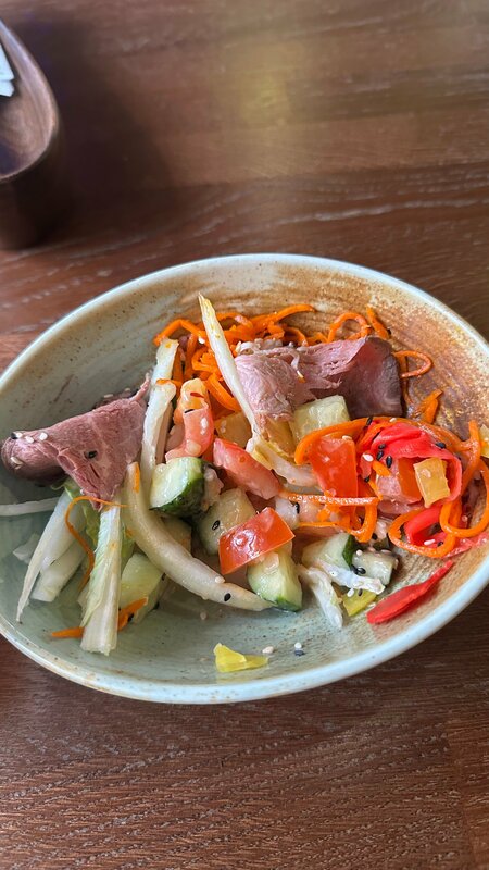 Зашла вкусно покушать, но к сожалению подали салат с привкусом какой то плесени. Официант был с насморком и совершенно не поняла принцип выбора блюд меню по грязному планшету. Второй раз заходить нет желания. Вид с улицу прекрасен