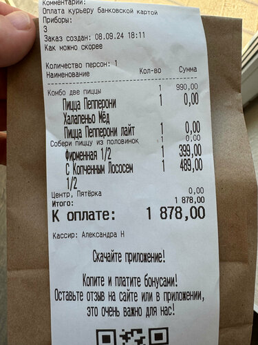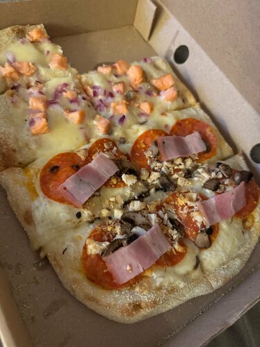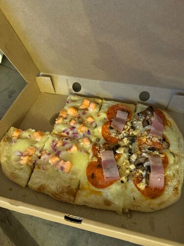 Пиццу готовили и везли 1.5 часа, приехала едва теплая, засушенная. Одна из заказа не соответствовала по ингредиентам заявленной, фото прикладываю, Руккола отсутствовала, сливочный соус тоже, сыр также не соответствовал, после звонка и предложения забрать сие чудо обратно последовал отказ со стороны пиццерии, просьба связаться со мной по урегулированию вопроса была проигнорирована, категорически не рекомендую, вечер был испорчен.