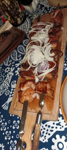 Потрясающе вкусно, невообразимо большие порции, вино просто супер, подача на горячих каменных тарелках, шкварчит еще на столе. Люля сочнейший, шашлык мягчайший, хинкали- внутри бульон с мясом, чай это особое наслаждение. Все что брали настолько вкусно, в Грузии мне кажется не так вкусно, да простят меня грузины. Но в Астане я побывала в гастрономической Грузии.