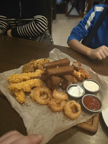 Атмосфера заведения уютная. Большое количество вкусной разнообразной еды и закусок. Приятно удивило выбор разливного пива и одыкватные цены. Так же подчеркну, что всё порции блюд не маленькие.