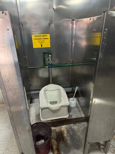 В нашем веке хоть бы эскалатор сделали на такую высоту лестниц. Пандус не удобный и с такой высотой толкать вверх тяжело будет. Все грязное, туалет грязный.