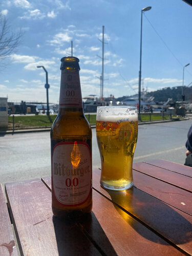 Нормальная кафешка, пиво в холодильниках бутылочное есть. Кофе вкусный. Воду подают. На фото вся Турция в 1 фото ) туалеты у них как раз. Туалет платный.
