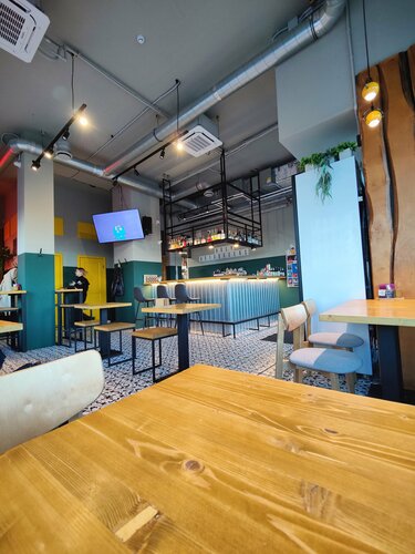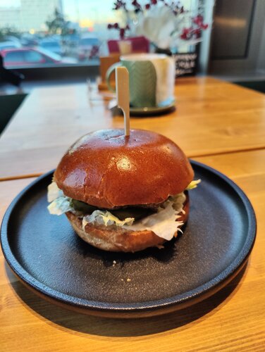 Небольшое заведение формата, "аля шавермная".Есть место доя бесплатной парковки поблизости.Всё чисто и светло. Приличный туалет. Хорошее обслуживание. Борщ, на мой взгляд, очень густой ( слишком много капусты), при этом не почувствовал насыщенность жиров. Поэтому не сильно порадовал, но сама подача с кусочками сала и чесноком, выглядела очень неплохо. Бургер внешне красивый, но соус показался чрезмерно жидкий, всё стремительно вытекало. Сухарики, приятелю понравились. Удивительно, но чай в стаканах продают, а не чайником. В общем и целом, всё очень неплохо, но на 5* на мой взгляд не тянет. Есть над чем поработать.