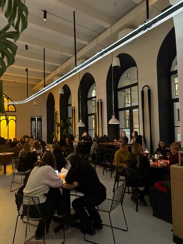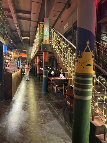 Случайно тут оказалась, хочется сюда вернуться. Вкусно, стильно, музыка стиль, персонал обучен, интерьер хорош, пришлось правда в очереди постоять минут 15 чтобы попасть, правда нас ориентировали на 39 минут и если мне коллега не сказал что очередь обычно быстро двигается, я бы не дождалась и ушла, хочу привести сюда своего сына подростка