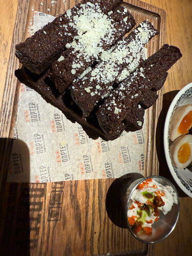 Вкусное место, мороженое с бородинским хлебом и азотом с портером прямо покорили мое сердечко. Официант терпеливо объяснял, мне понравился нижнегородский сидр, атмосфера классная , единственное плохо что курили кальян