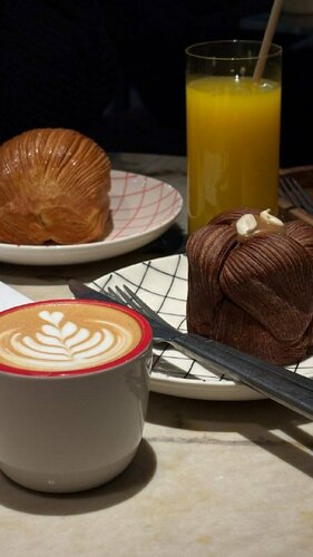 Очень вкусная выпечка, хоть и оверпрайс на некоторых позициях (да и в целом, отдать за булку 400 рэ - не для каждого ок и это ОК)) Кофе (пробовали только классику все разы посещений) очень вкусный, капучино в меру кофейный и молочный Атмосфера довольно шумная: постоянный поток посетителей, полагаю, что из офисов банков/Метрополиса в том числе. Если есть какие-то плюшки и стемы лояльности для сотрудников этих офисов, то, думаю, это крутая опция для них и гарантированная лояльность к Лицею. Хочется отметить, что входная группа очень маленькая и неудобная, были в холодную ветряную погоду: место, чтобы разместить верхнюю одежду, неудобное, поскольку пока ты убираешь шубу на вешалку, в спину может дышать уже другой посетитель, вошедший с улицы. Не продумано. В целом хорошее кофейное место в САО, которое обособлено от ТЦ. Как житель близлежащего района я очень рада этой кофейне. С Уважением, консьерж дизайн-отеля СтандАрт, Александра. Москва.