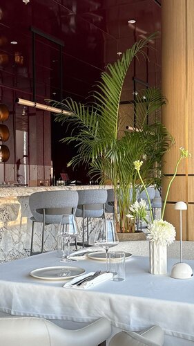 Первое впечатление - очень стильный, неброский, утончённый интерьер. Входная группа красивая: ваза с цветами, сухоцветами, грузинскими сладостями. Встречает гостей хостес, девушка была приветлива, предложила выбрать стол на свой вкус (я ставила предварительно бронь), кстати, на телефонный звонок ответили мне оперативно, рассказали о меню, без шаблонных вымученных фраз сделали бронь стола и помогли определиться заранее, на какие позиции меню стоит обратить внимание. Очень понпавился кофе, из всей группы ресторанов LB именно в Nené капучино был самым вкусным. Десерт гранат - вау! Посуда - восторг! Было приятно, когда хостес уточнила на выходе из ресторана обратную связь (помимо стандартного вопроса от официанта). Были в выходной день, в 14 часов загрузка была 15%, в 15 часов около 90%. Стоит делать бронь. Только приятные впечатления. Есть желание вернуться и советовать другим к посещению.